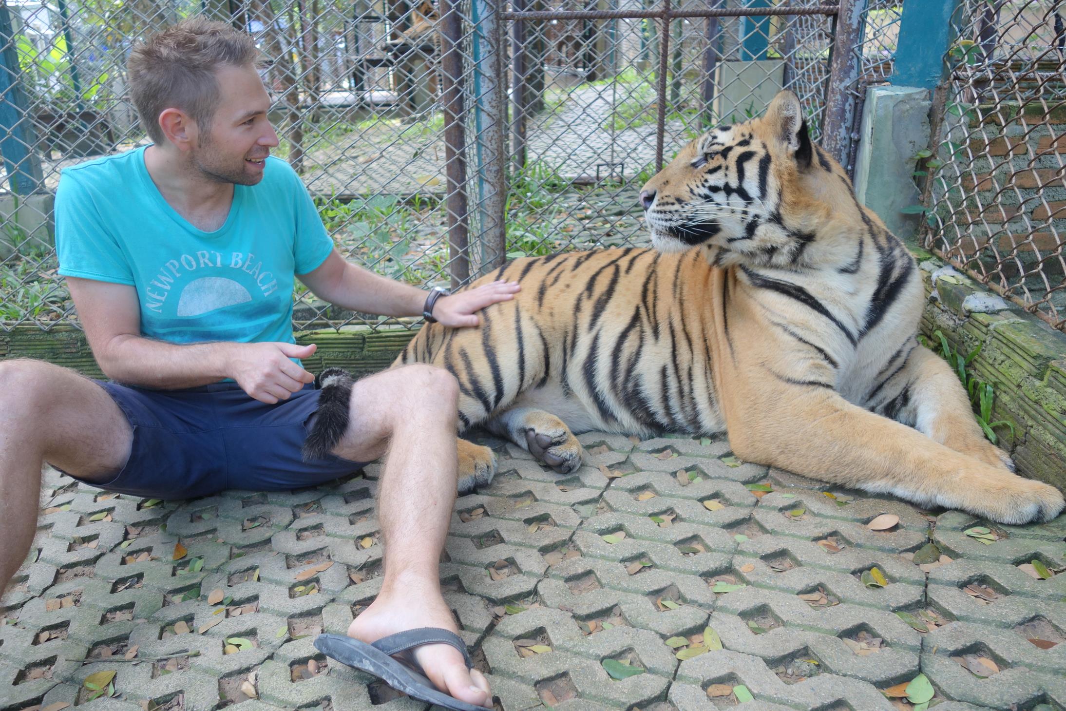 Thailand stand eigentlich nicht auf unserer Reise-Wunschliste. Dennoch haben wir es in keinster Weise bereut, dieses Land zu bereisen (und sogar wieder dorthin zurückzukehren). Der Kontrast zu Tansania konnte nicht größer sein: touristische Infrastruktur (wir sind nicht nur da, um abgezockt zu werden), geiles & abwechslungsreiches Essen und kein Staub. Unser erster Stop in diesem wunderschönen Land war die Hauptstadt Bangkok. Nach zwei Tagen, an denen wir uns vor allem akklimatisiert haben, haben wir unseren Abstecher nach Hongkong gemacht (von dem ihr schon erfahren habt). Back in Bangkok stand ganz im Zeichen der Ruhe: das Kloster Wat Mahathat war dafür ein geeigneter Ort. Dort haben wir zwei volle Tage nur meditiert. Danach ging es mit dem Nachtbus in die Kulturmetropole des Landes: Chiang-Mai. Hier hieß es für uns erst einmal: ab an den Herd. Beim Kochkurs haben wir 13 superleckere Gerichte gezaubert. Anschließend stand für uns endgültig fest, dass die thailändische Küche eine der besten der Welt ist. Sie kombiniert auf raffinierte Weise die Geschmacksrichtungen salzig, süß und sauer. Am nächsten Tag wurde es richtig emotional. Wir haben eine Herde Elefanten besucht, sie gefüttert, gewaschen und ausgiebig mit ihnen gespielt. Dabei war es uns wichtig, ein nachhaltiges Projekt zu unterstützen und diese wundervollen Tiere in ihrer Heimat zu erleben. Tagsdrauf wurde es vor allem für Timo gefährlich: er hat mit der größten Raubkatze der Welt gekuschelt und ihr tief in die Augen geblickt. Die anschließende Kobrashow erschien harmlos dagegen. Von Chiang-Rai aus führte uns der Weg neben einigen anderen Attraktionen ins goldene Dreieck (bis vor einiger Zeit das größte Opiumanbaugebiet der Welt). Und jetzt: machen wir uns auf das wahrscheinlich größte Abenteuer dieser Reise gefasst. Myanmar. Dies haben wir bereits heute am eigenen Leib erfahren…
